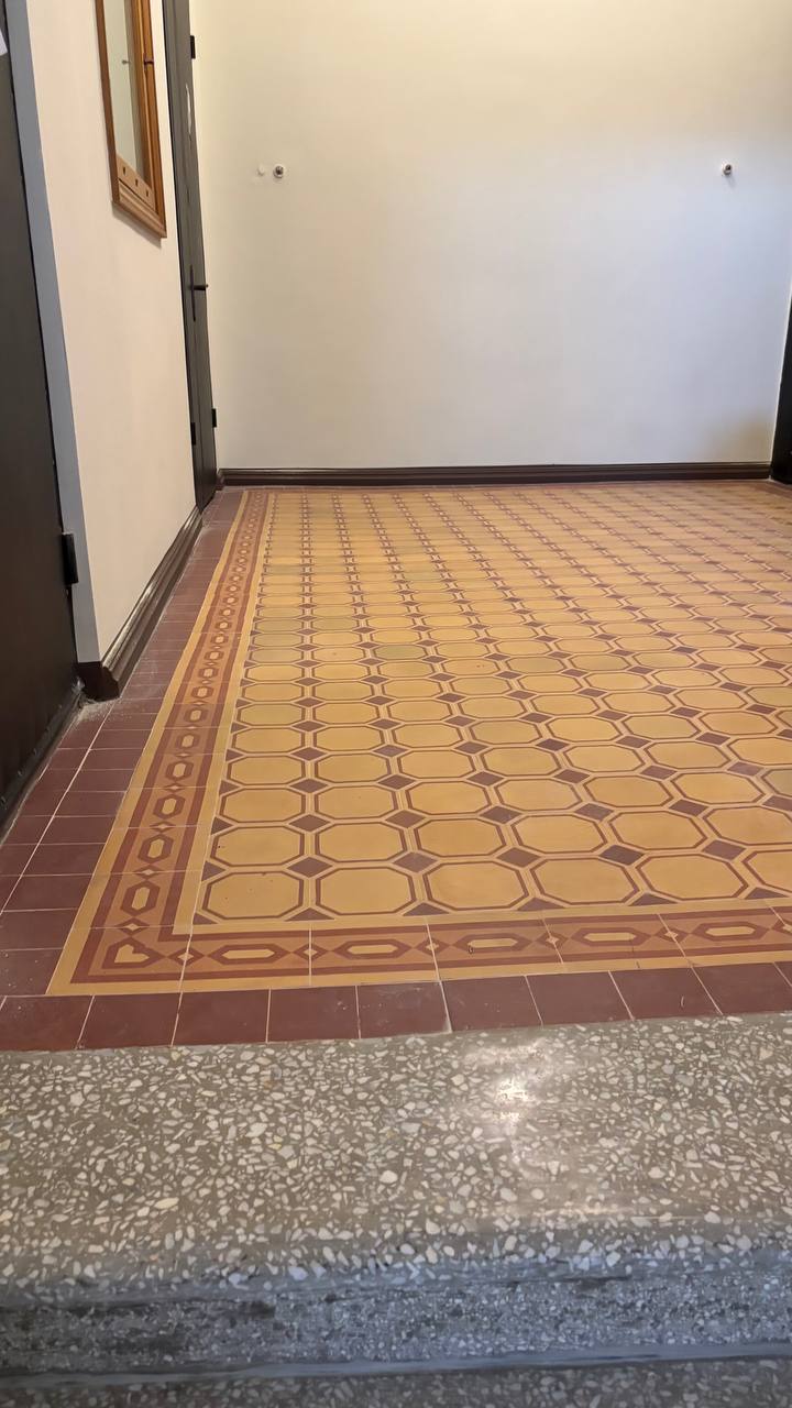 Частичное воссоздание метлахской плитки в подъездах сталинской высотки в Москве